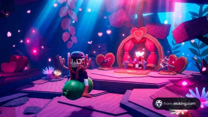Le chemin est assez linéaire, mais gardez un œil sur les décorations distinctives de la Saint-Valentin qui marquent le bon itinéraire. Celles-ci incluent des cœurs flottants et un éclairage rose, rendant la zone facilement identifiable par rapport à l'environnement normal d'Abyss. Cette zone est une addition limitée dans le temps, alors assurez-vous de visiter avant la fin de l'événement.